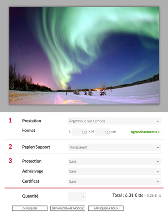 Les photographes les plus exigeants retrouveront en ligne une qualité de tirage, des choix de support et d’encadrement diversifiés, et la possibilité de commander leurs tirages sur mesure au mm près.