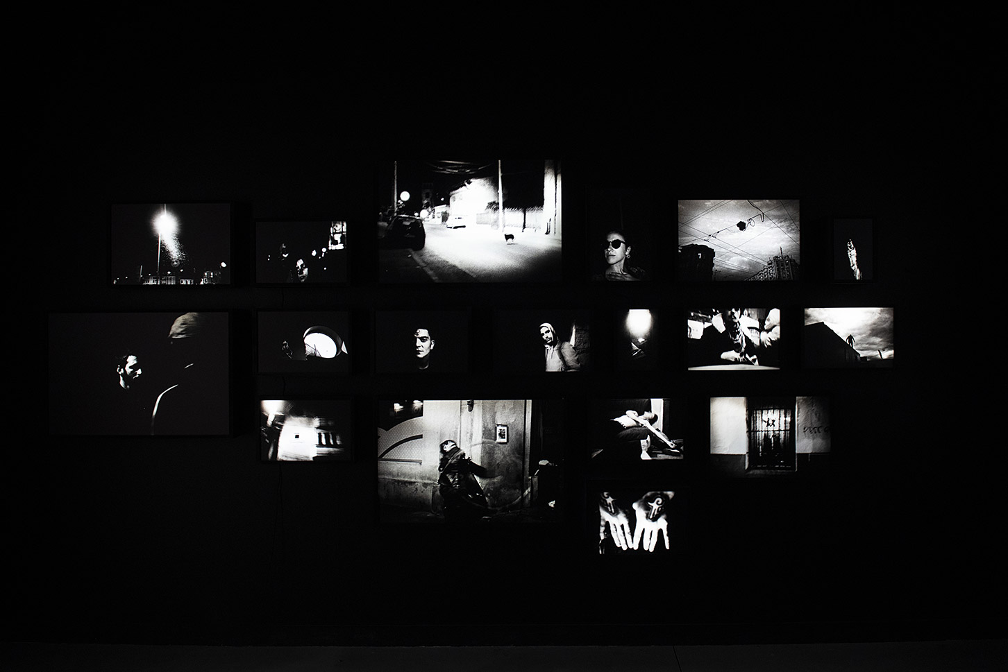 Des narrateurs anonymes nous entraînent dans un univers où le jour ressemble à la nuit. À travers le regard singulier de Louis-Colin, le monde devient flou et le grain envahit l’espace. Il se dégage de l’étrange, une forme de malaise et beaucoup d’incertitudes. Les repères s’estompent et des détails nous accaparent. C’est un univers personnel et implacable qui s’impose au premier coup d’oeil. Pour autant, en photographiant de manière instinctive et en s’égarant au fil des rencontres, il permet à des narrations inédites de se déployer. Ses images flirtent avec le sinistre, créent un univers onirique où le cauchemar n’est pas très loin, mais où les lumières des villes sont pareilles à de grands feux de joie. Ce sont les éclats d’une fête que l’on entend dans l’image, ce sont des inconnus grimaçants qui mènent au festin des joyeux.