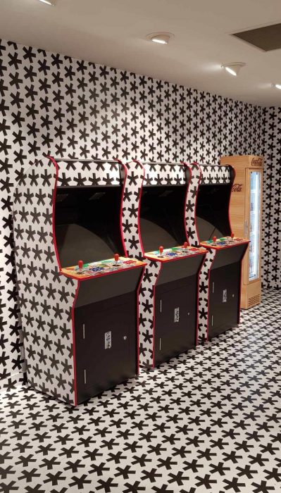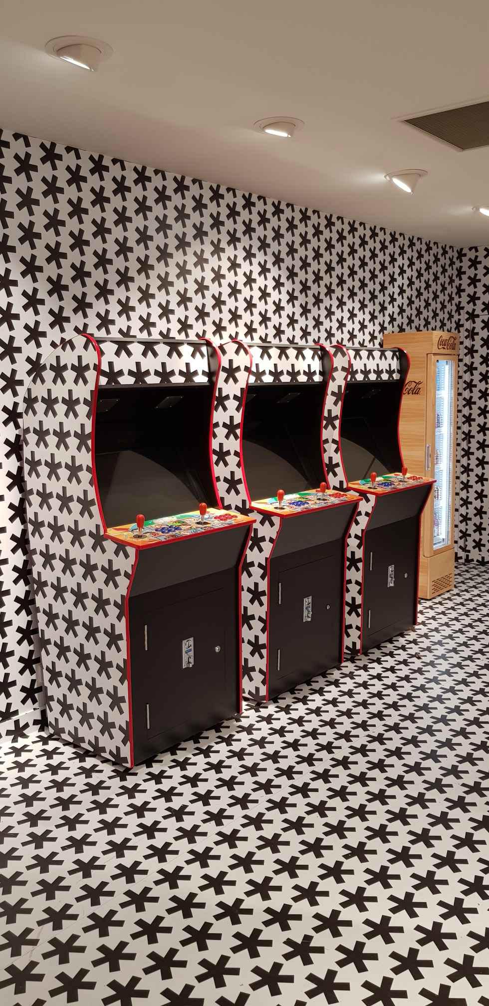 – Mise en place des bornes d’arcade vintage. Ils doivent communiquer pour attirer l’oeil sur leurs Flagship.