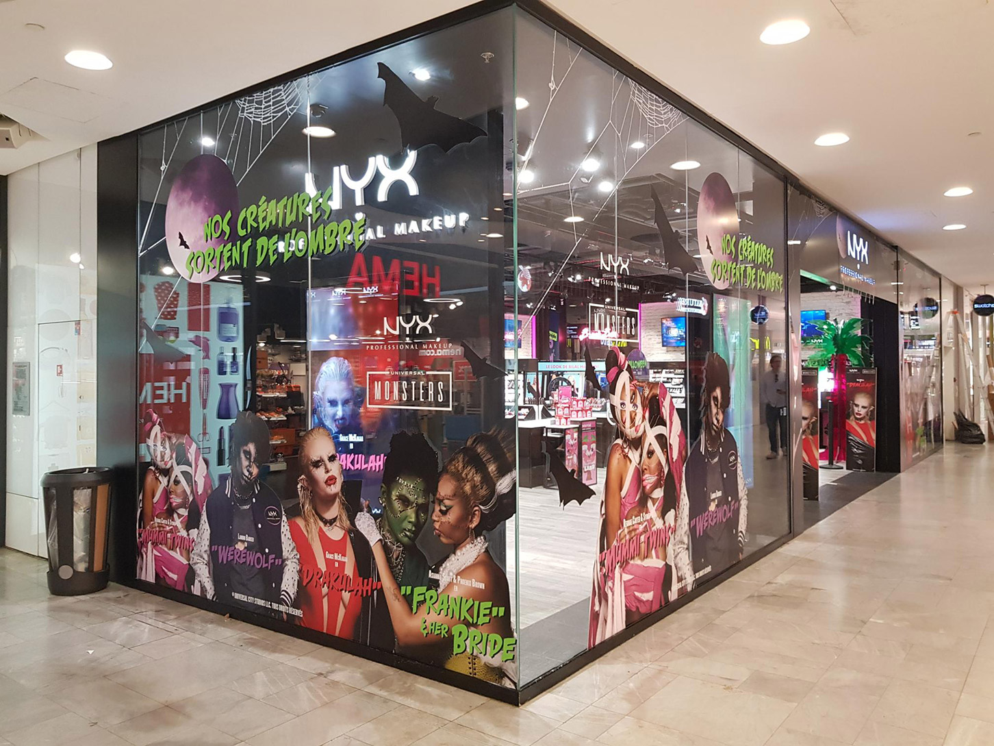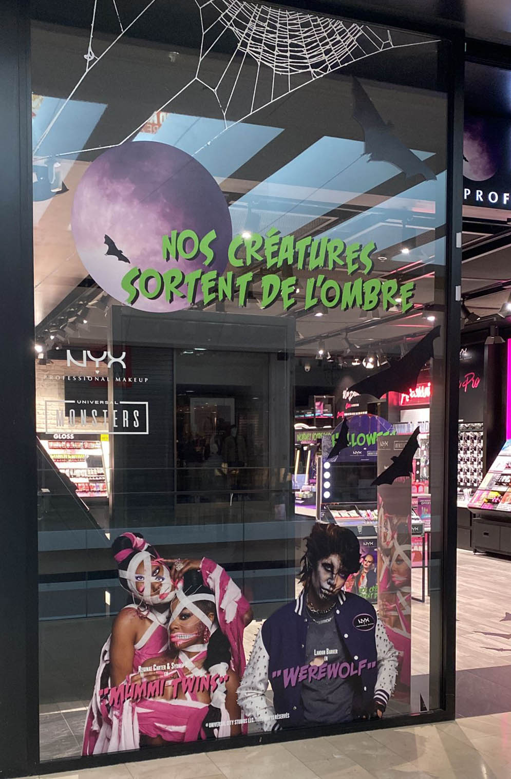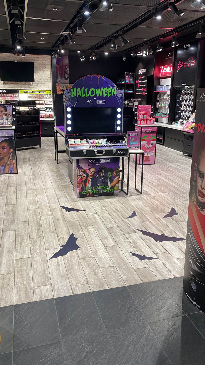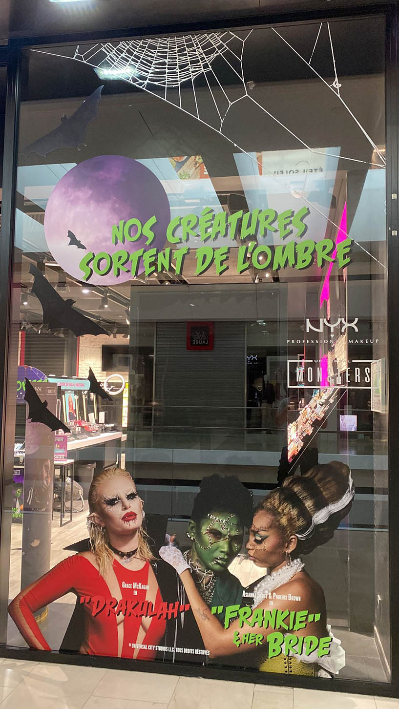 Vampires, Loups-garous, momies, zombies,… Tout une bande de monstres pour mettre en avant les produits NYX Professional Makeup en boutiques.