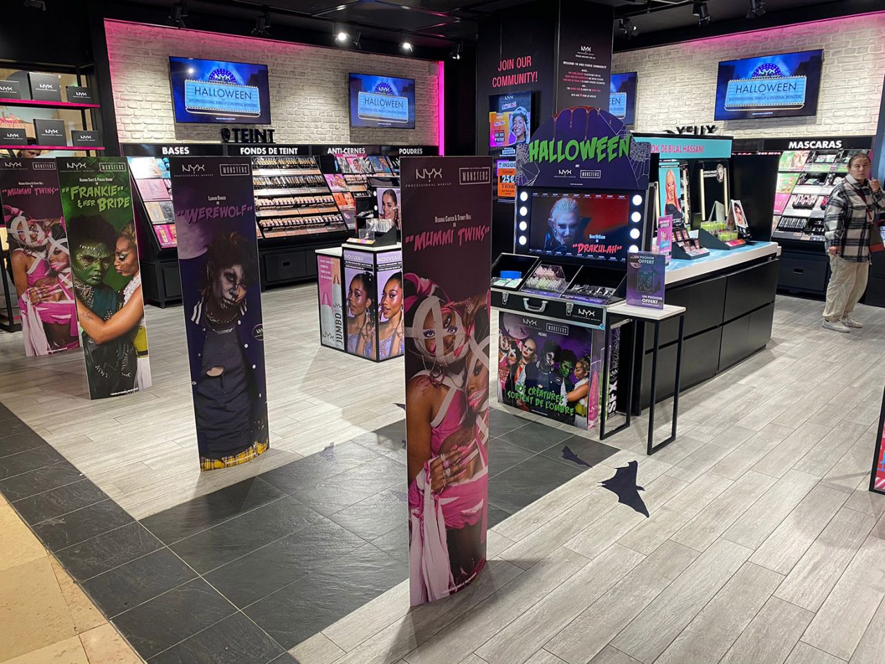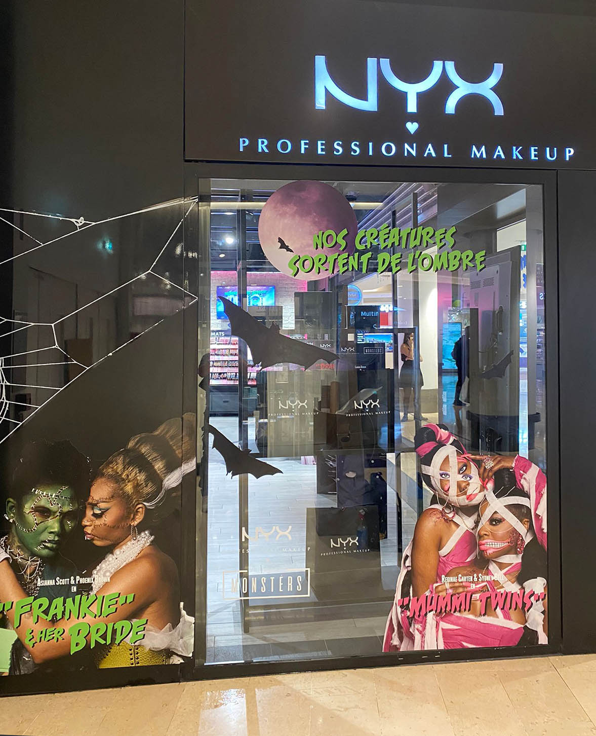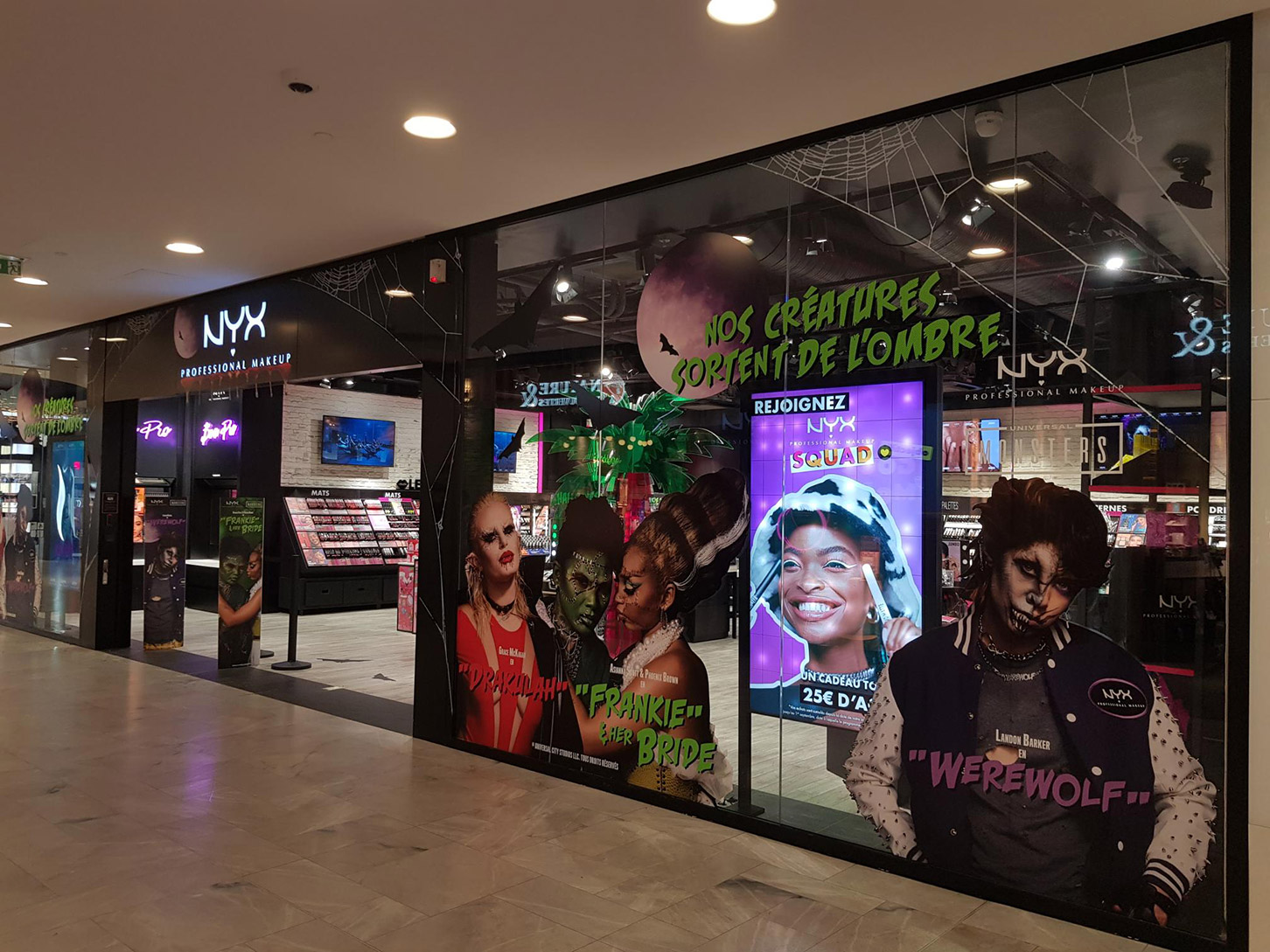 Vampires, Loups-garous, momies, zombies,… Tout une bande de monstres pour mettre en avant les produits NYX Professional Makeup en boutiques.