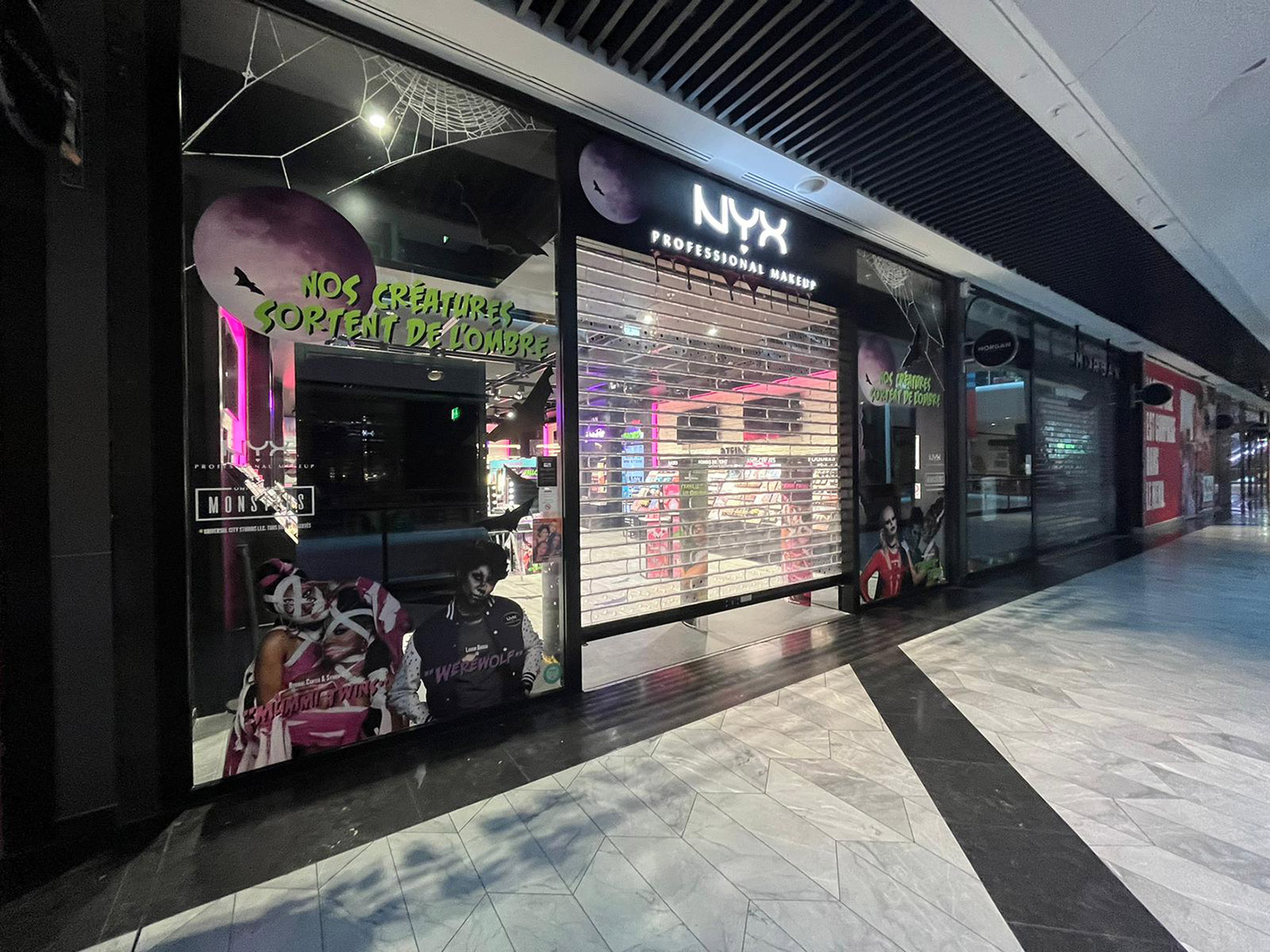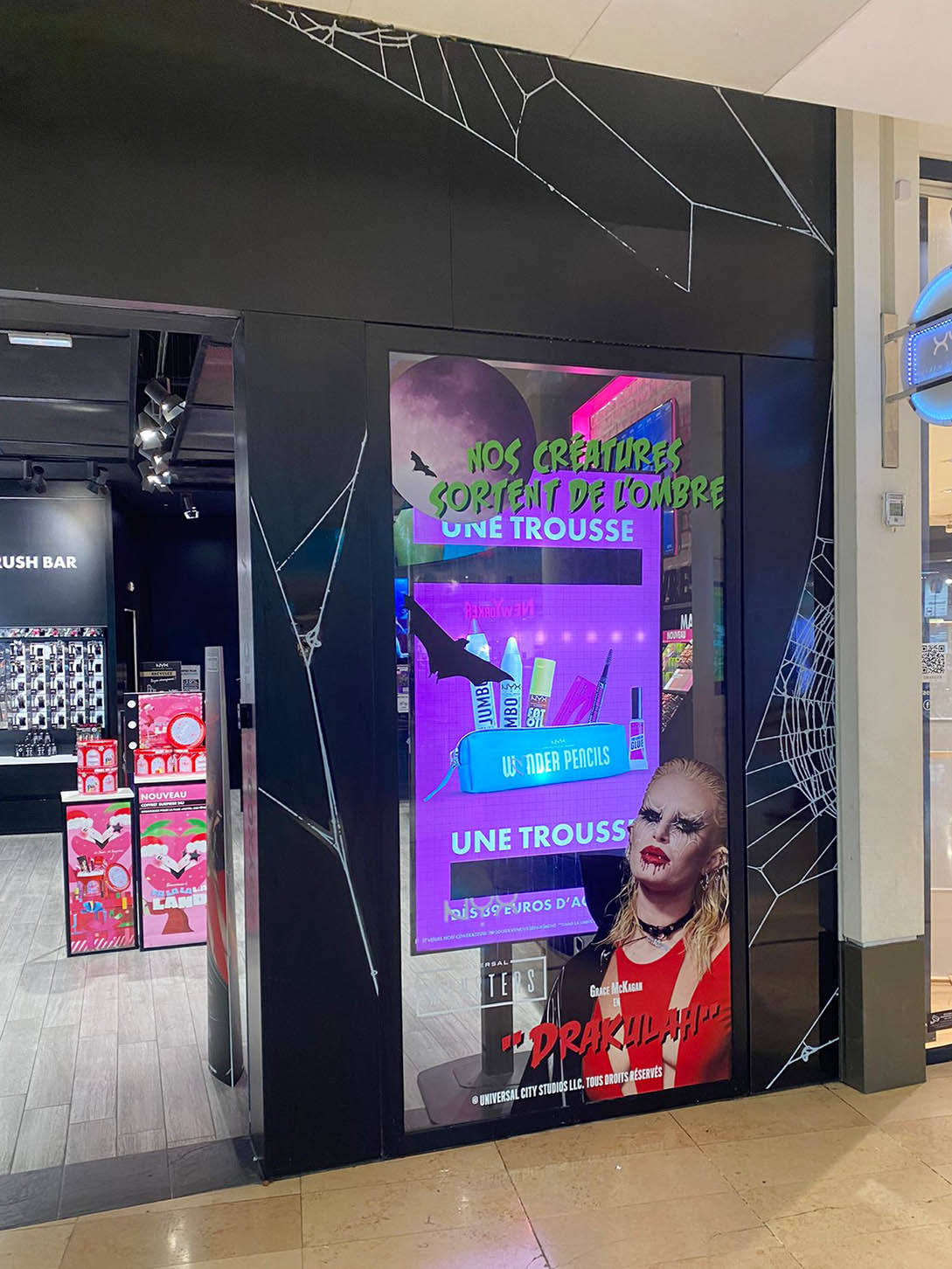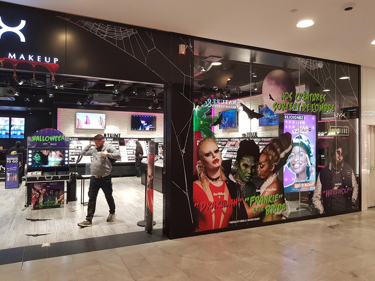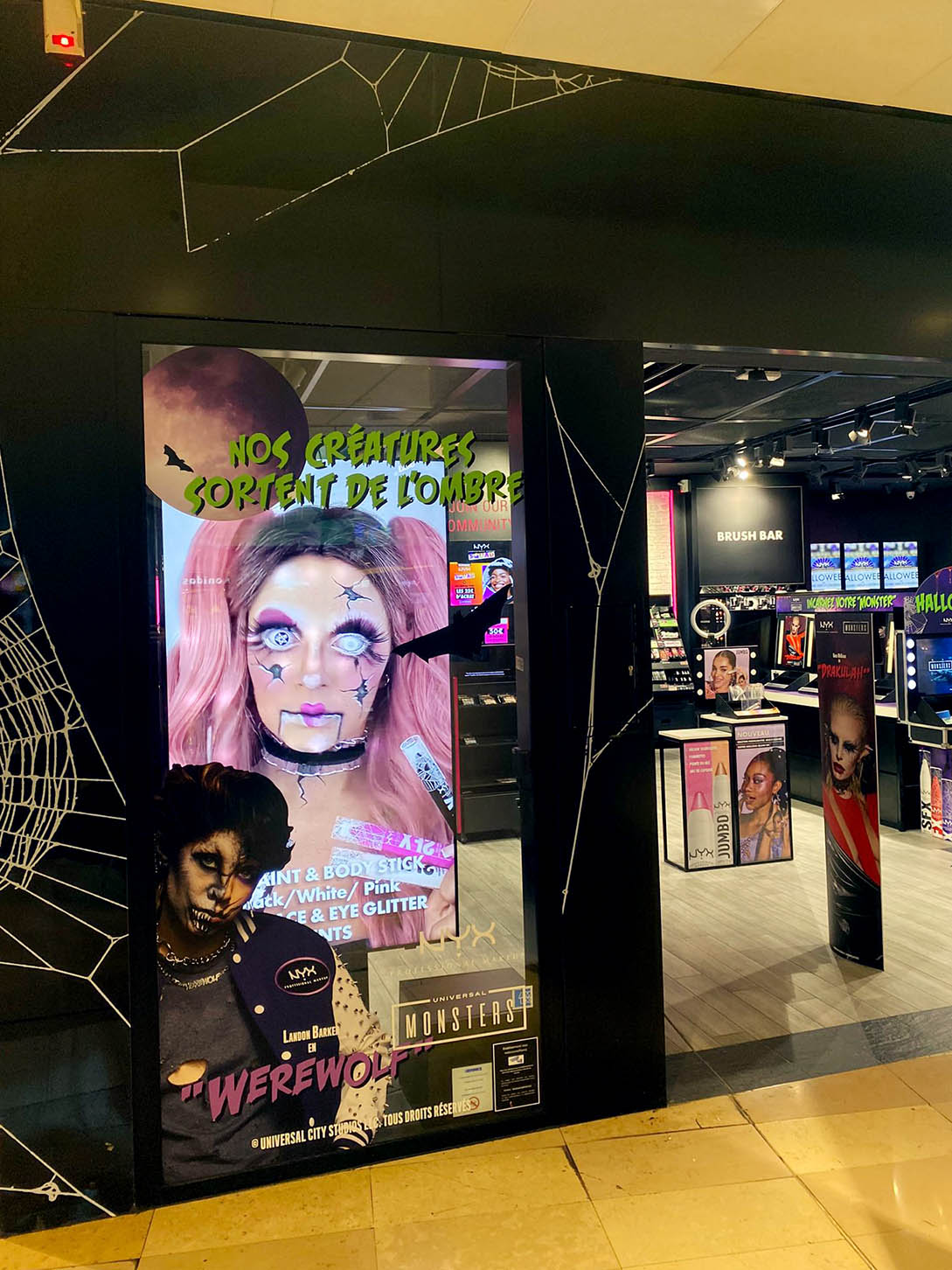 Vampires, Loups-garous, momies, zombies,… Tout une bande de monstres pour mettre en avant les produits NYX Professional Makeup en boutiques.