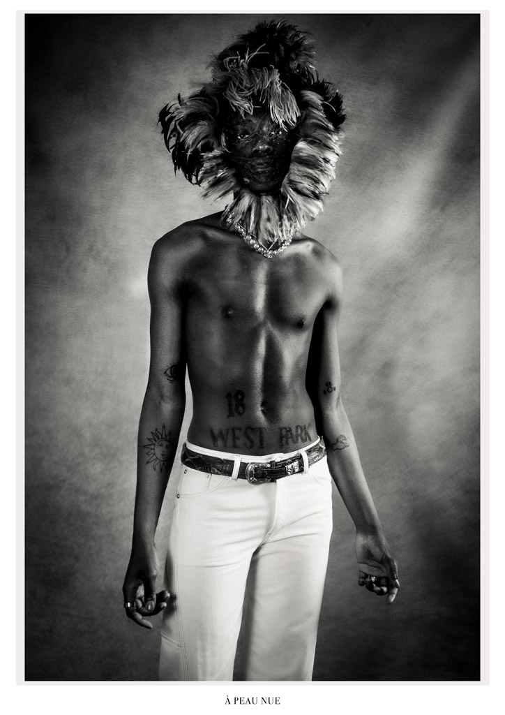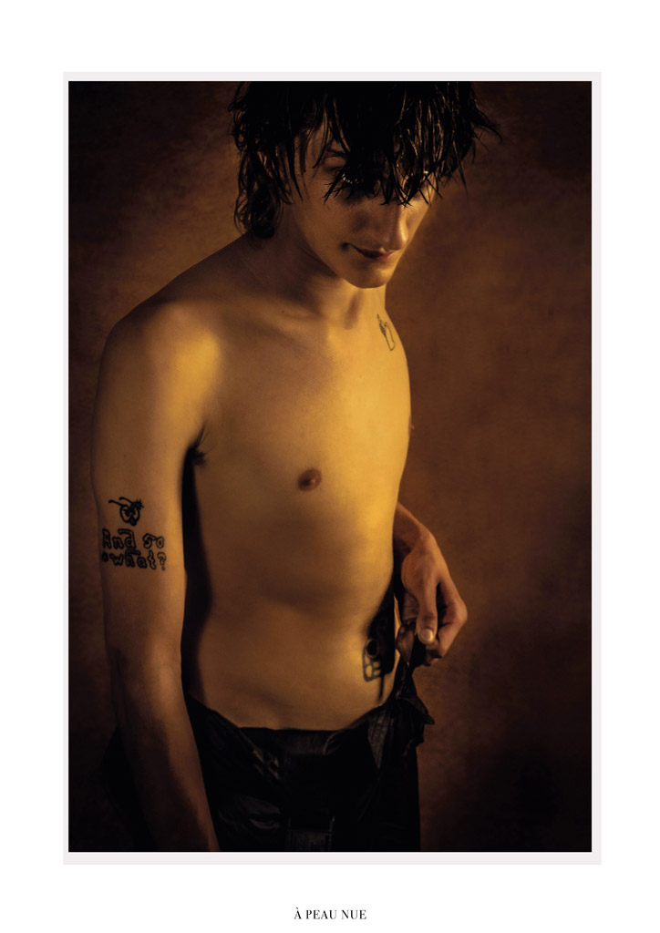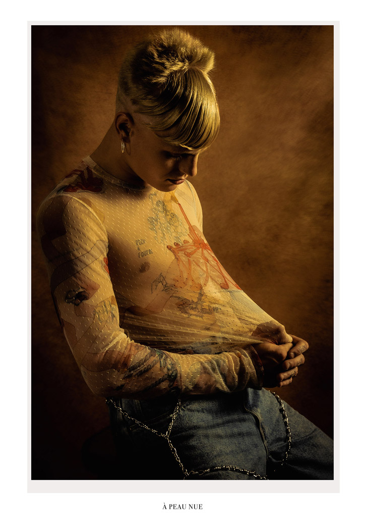 À travers ces photographies je ne me suis pas uniquement intéressé à la dimension physique des tatouages, mais plutôt à la manière dont ils participent à la construction identitaire de l’individu. Ma volonté était de mêler les corps tatoués à la chair du textile, où le tatouage habille le corps et le vêtement devient ornement.