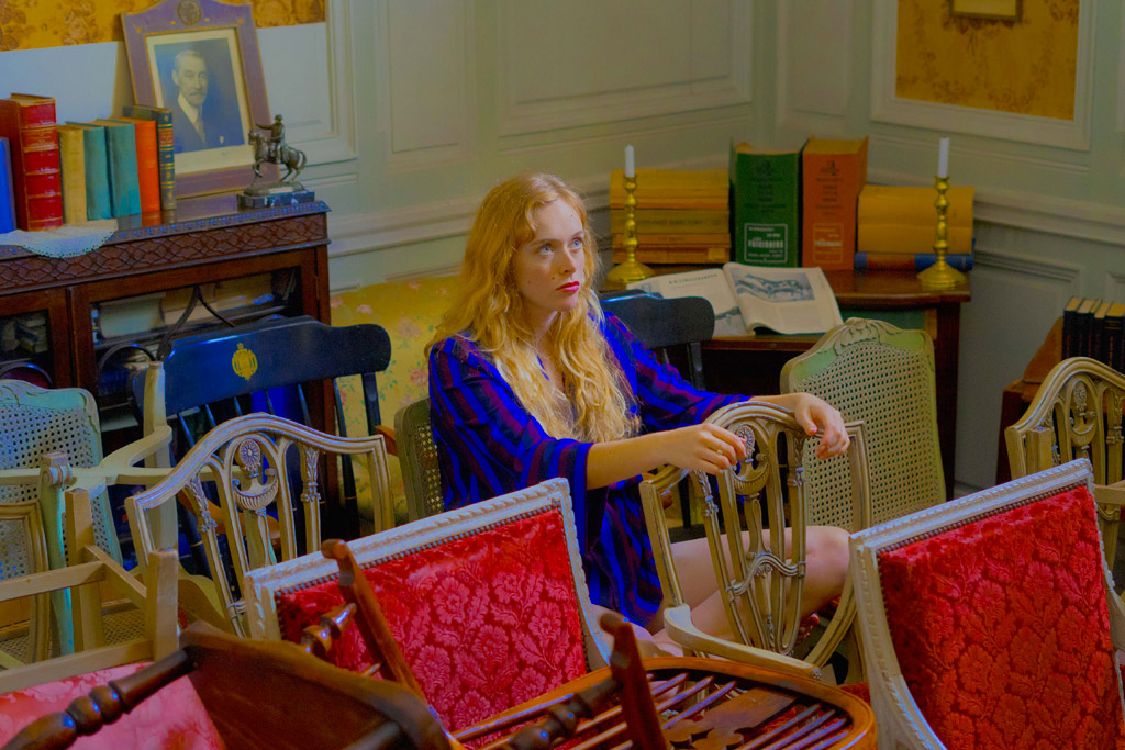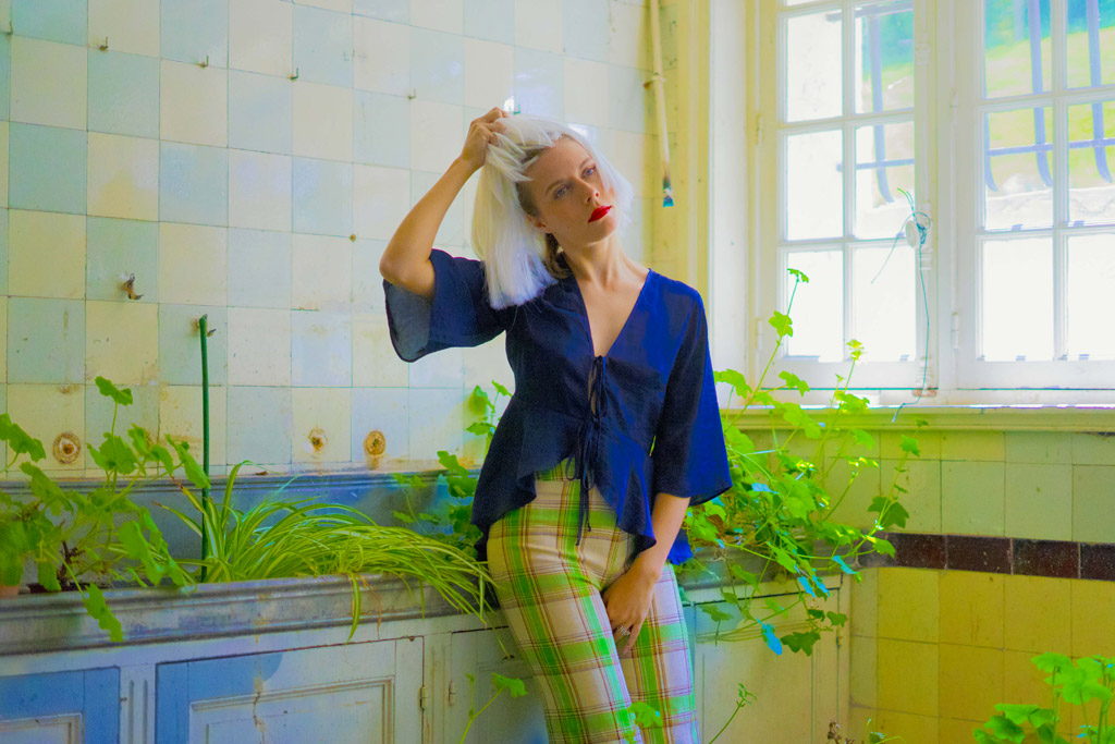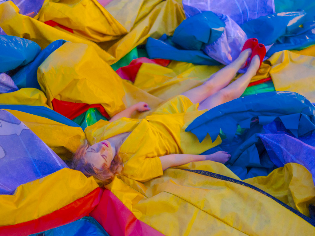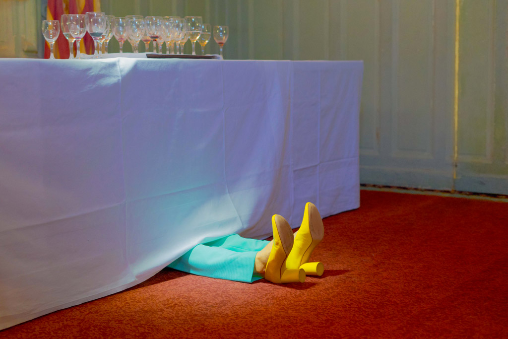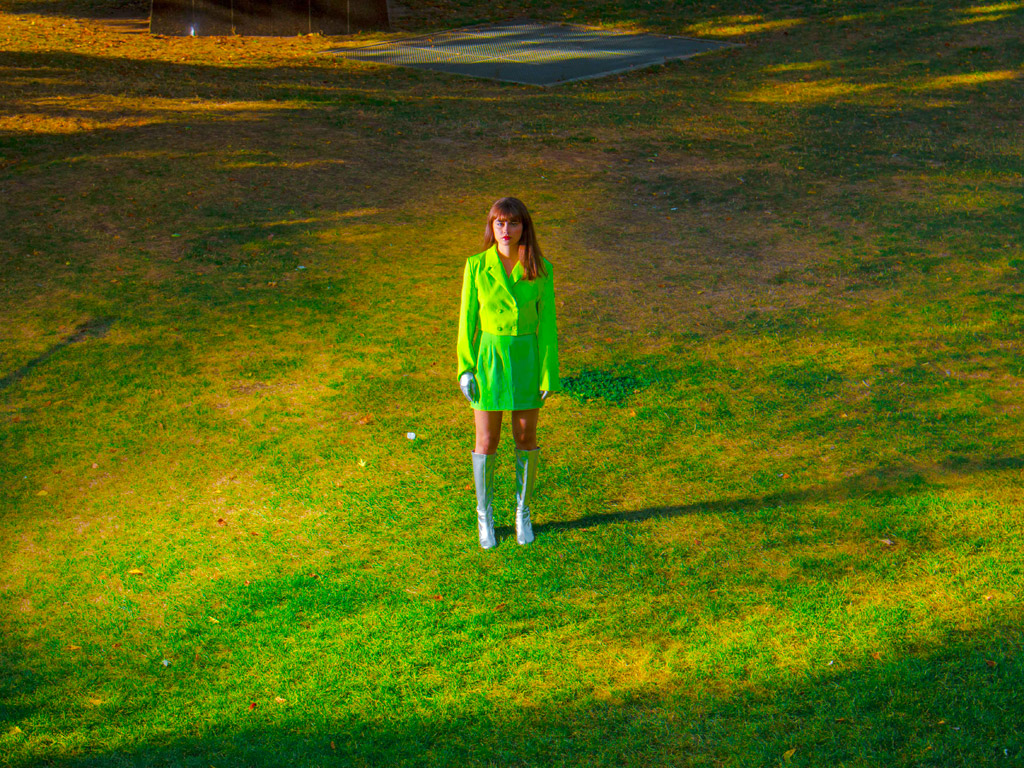 Pour contrebalancer avec cette pratique impulsive et automatique, je fais aussi de la photographie de mise en scène. J’aime photographier des femmes avec des postures figées, comme coupées du temps. Je porte une grande importance aux vêtements et aux couleurs. J’aime les couleurs vives ; elles donnent un caractère régressif à la scène et, à la vue de l’image, remettent à jour un plaisir enfantin.