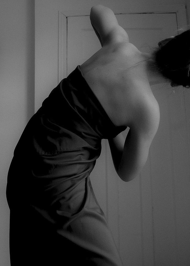 Les premières photos comportent un peu plus d’éléments, on observe parfois les gestes de résistance, parfois l’acceptation. En gros plan, la sensation de se rapprocher des sentiments du modèle. La lumière douce et le fond uni nous permettent de nous concentrer sur le corps, et ses réactions face à la vie.