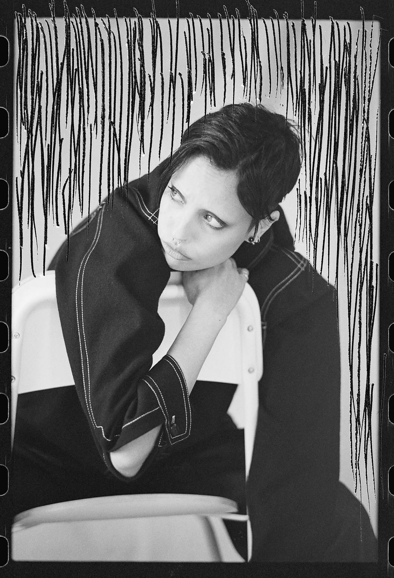 L’expression «broyer du noir» signifie être déprimé, mélancolique, avoir des pensées sombres. Au départ, cette expression était utilisée par les peintres qui broyaient leurs pigments pour en faire de la peinture. En remplaçant les pigments par la surface photosensible de la pellicule qui est grattée, je souhaite représenter cette expression en donnant un aspect torturé aux images.