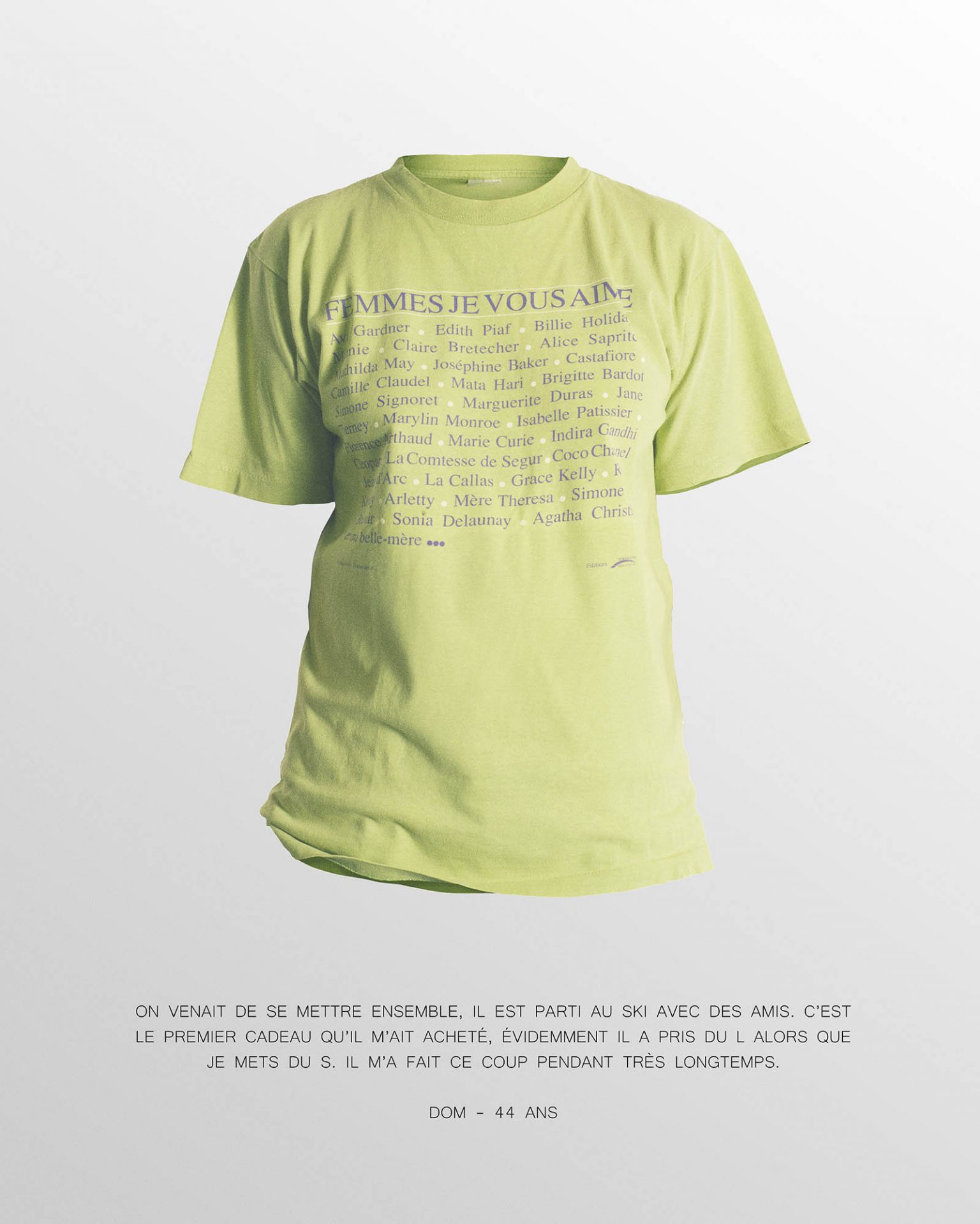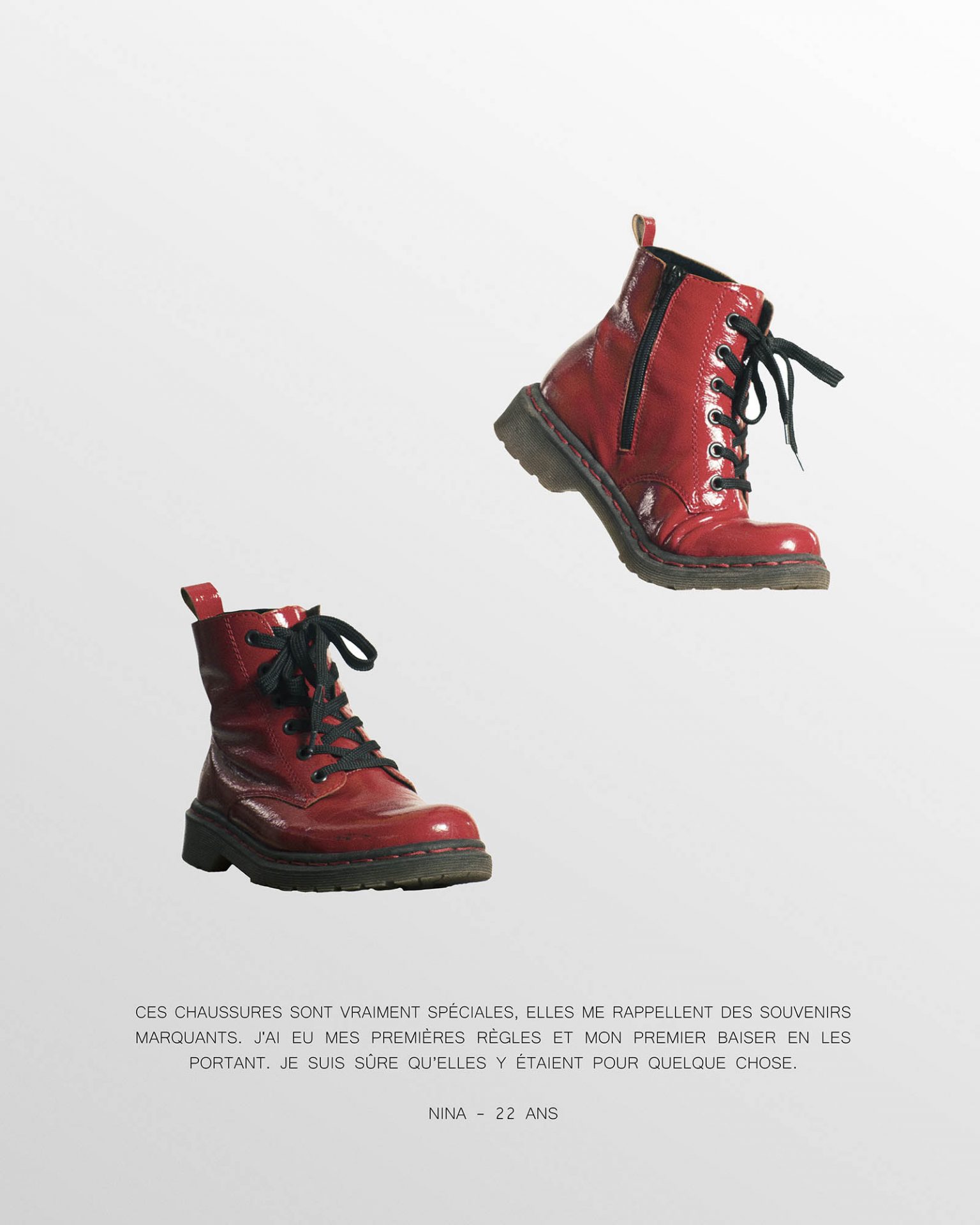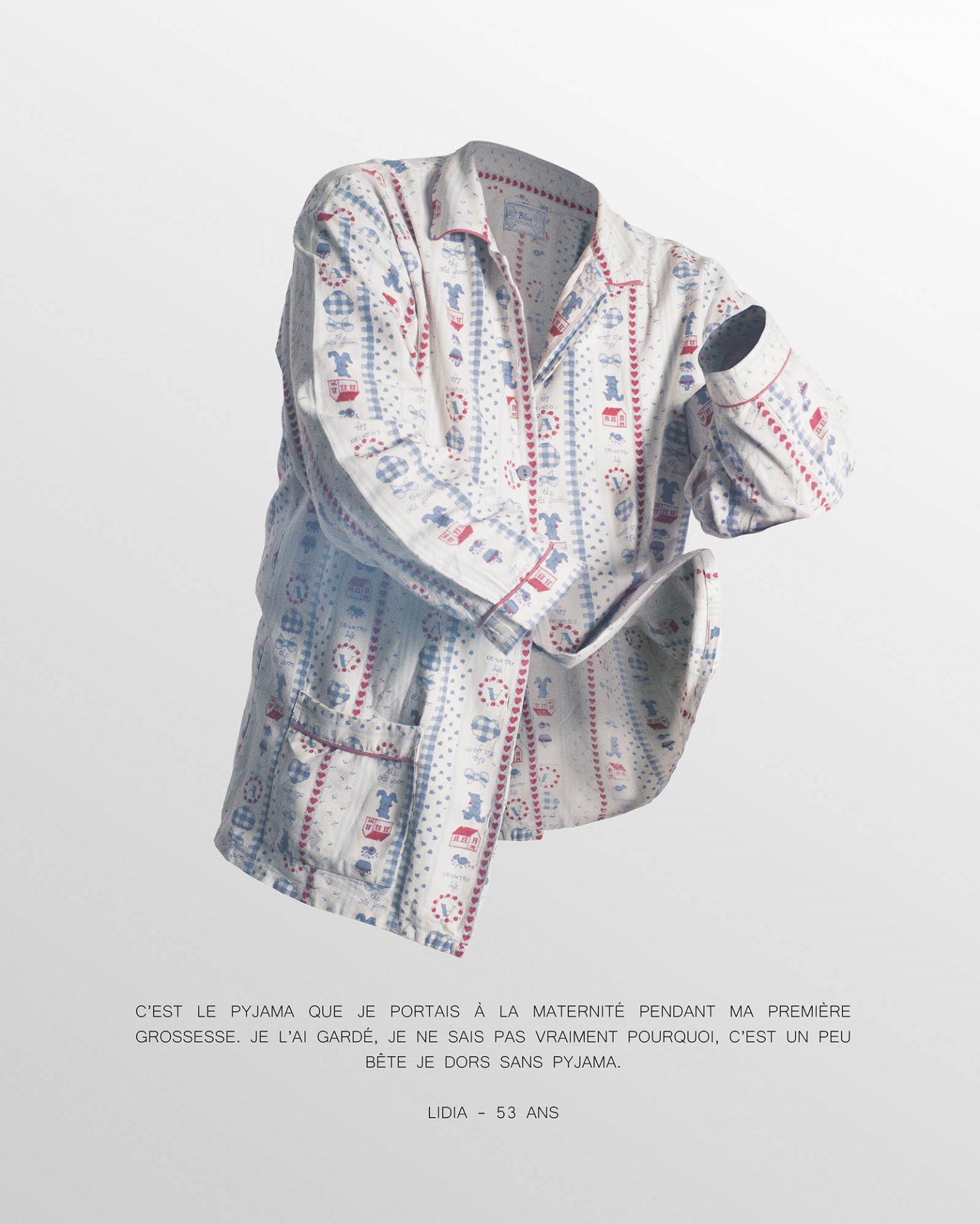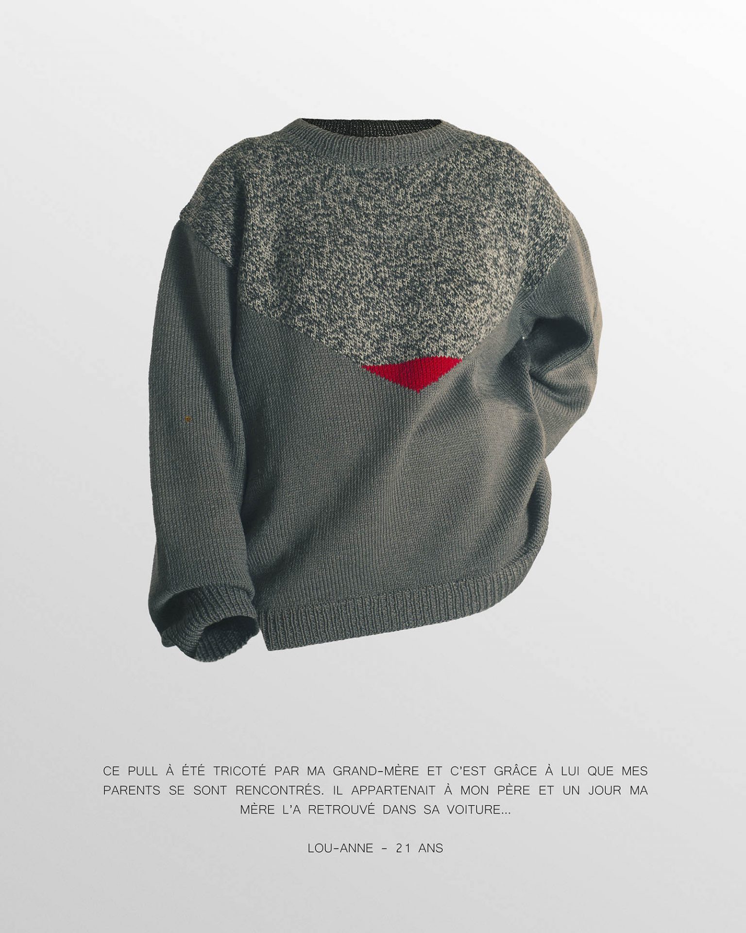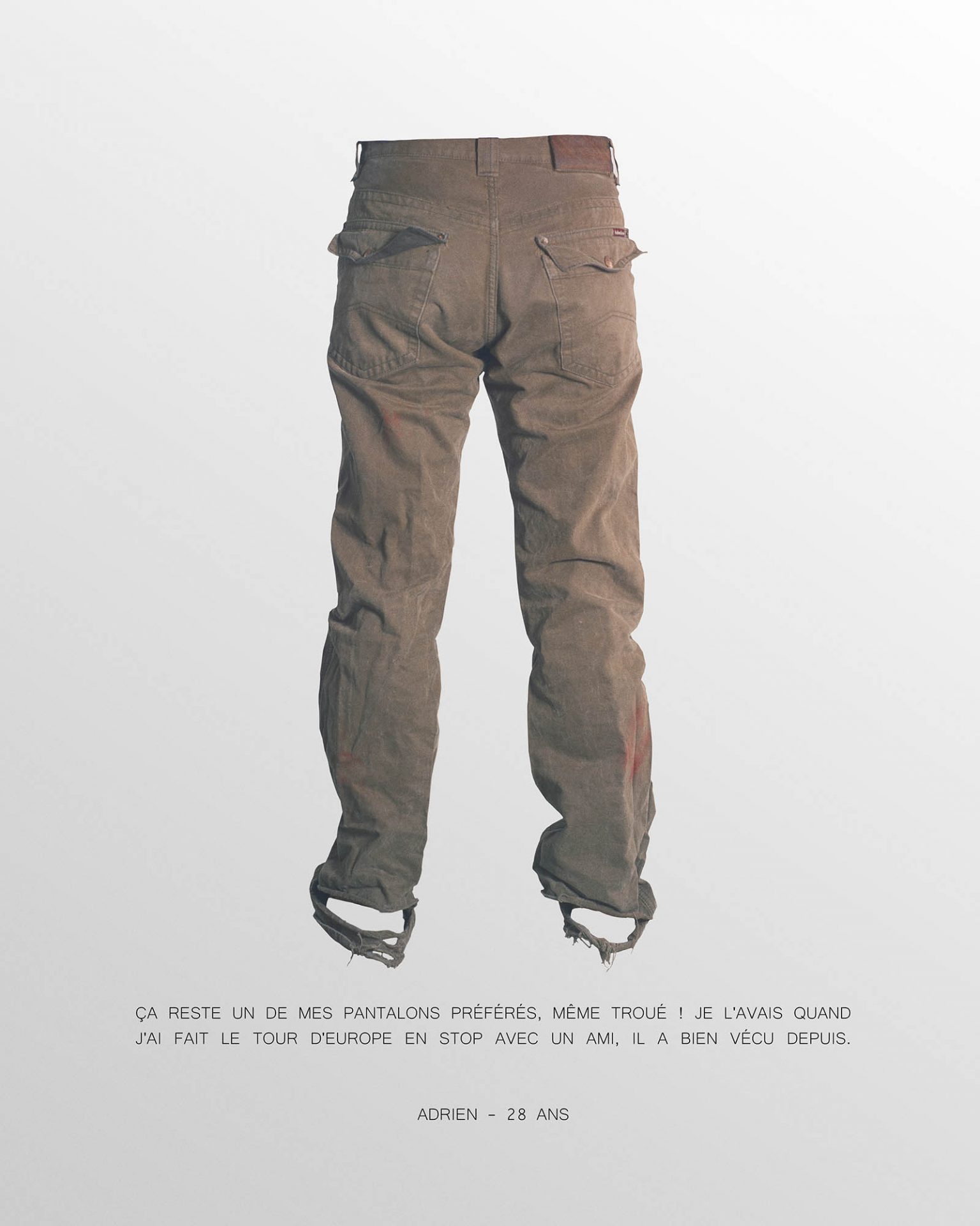 Nos vêtements nous les portons, nous les usons, nous les jetons, mais nous les chargeons aussi de souvenirs. Ils deviennent alors des objets importants, que nous conservons, puis que nous transmettons parce qu’ils nous rappellent une histoire. Ce sont des petits fragments de nos vies. Pour cette série, chaque modèle a posé dans le vêtement de son choix, la seule consigne était que celui-ci soit important à ses yeux, qu’il soit lié à une histoire ou à un souvenir. Le vêtement prend alors vie, grâce à la présence invisible de sa ou son propriétaire.